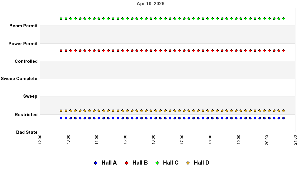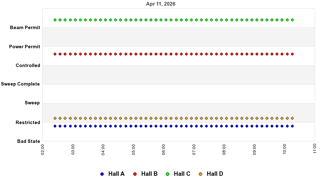 Since no beam is expected, the hall is put in controlled access and detectors/targets into safe state. All shifts are put on standby and the counting house will be unstaffed until Monday morning.